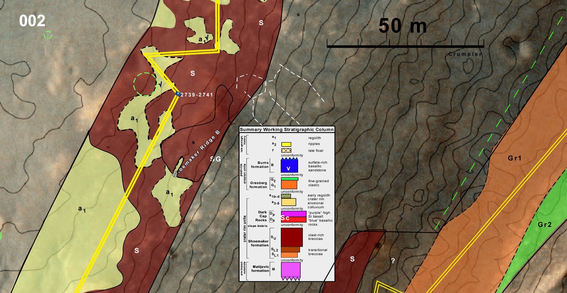 Tuesday, November 12, 2019 - 10:30amBelow are some preliminary concepts for the presentation of the Endeavour crater geologic traverse maps. Conceptually, the products are simple polygons of successive areas alow the entire traverse. The final data set would consist of 90 to 100 subframes and the accompanying reference map.