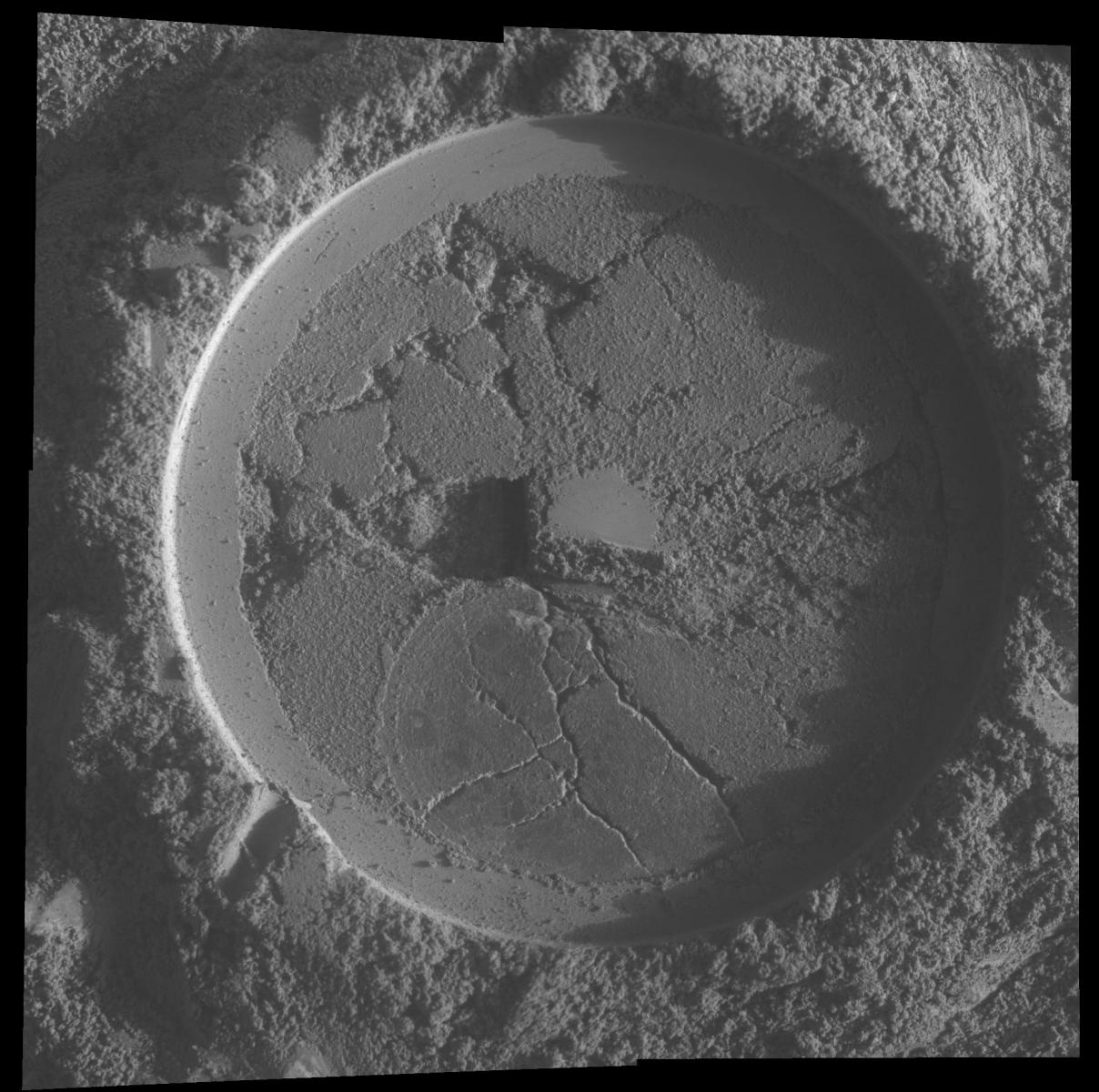 The latest Rock Abrasion Tool (RAT) hole. This is a Microscopic imager mosaic of 4 frames and is  about 6 cm across.