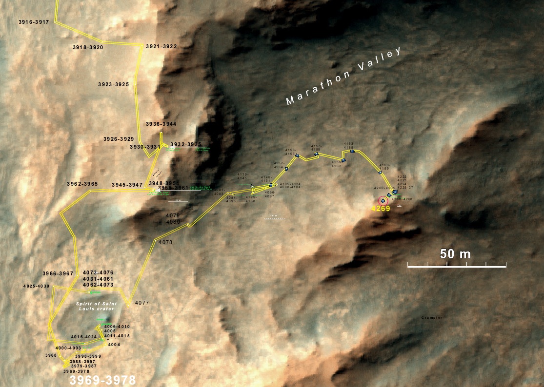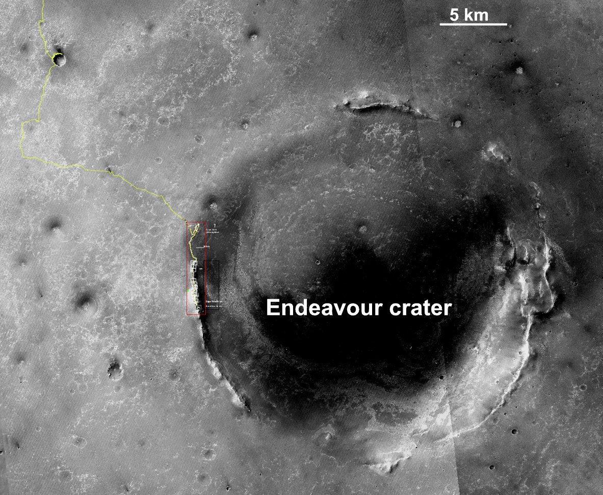 Above. Overview of Opportunity’s traverse thus far and as of its 12th anniversary on Mars.
