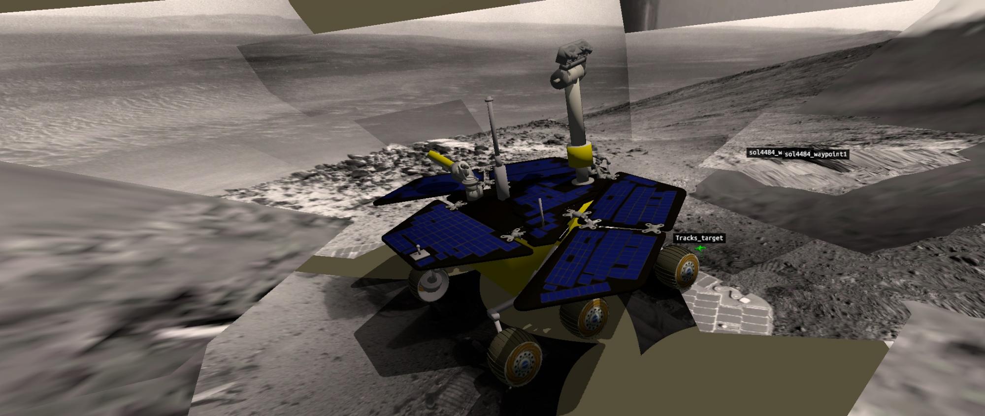 05. Opportunity immersed within the current set of images. This gives you the correct impression that Opportunity is perched on a high ridge with a relatively commanding view of the valley ahead as well as the floor of Endeavour crater.