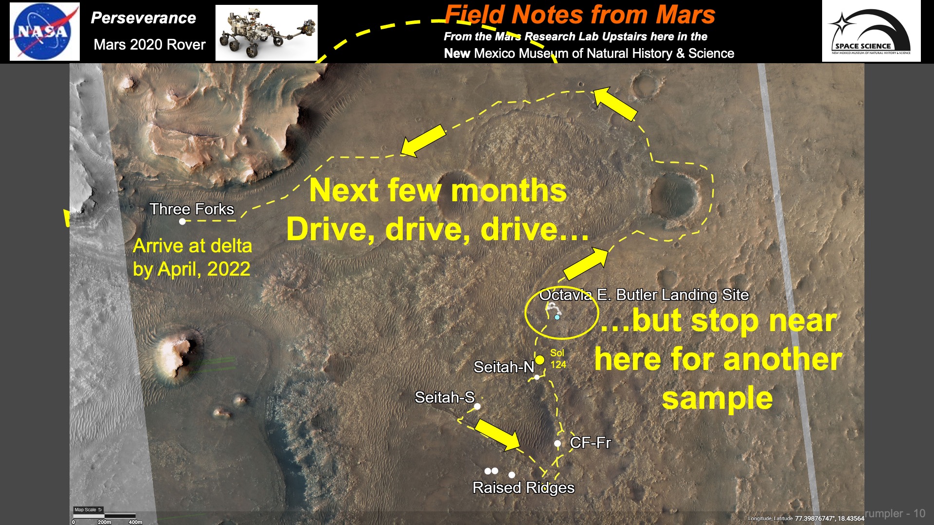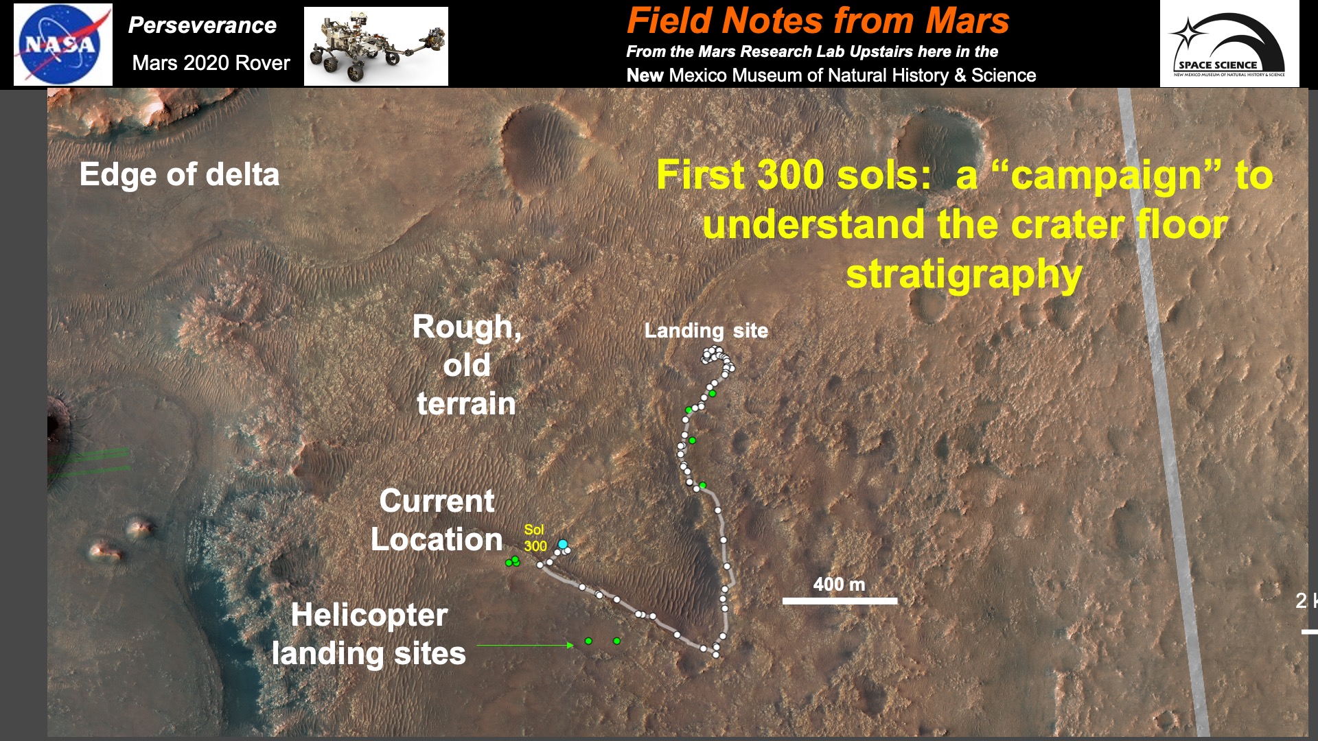Wednesday, February 2, 2022 - 2:00pmWe have been busy traversing the floor of Jezero Crater and have collected several samples for eventual return to Earth as well as running the Ingenuity helicopter through its paces.. The geologic field mapping from the rover perspective has been challenging as the rocks are all very weathered and altered from being present during the very wet early history of Mars. Below are som summaries of important events